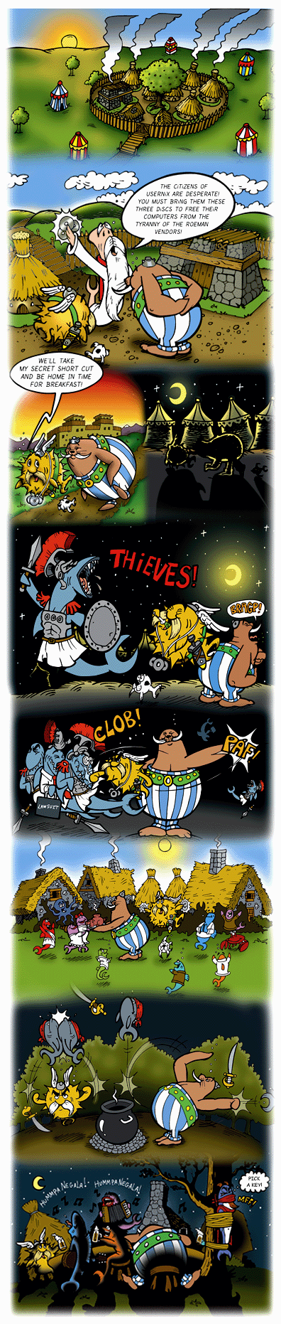 This song is an allegory of the recent difficulties we went through dealing with Sun, who refused our request for documentation about their UltraSPARC III processors. We want documentation, because these are the fastest processors with a per-page eXecute bit in the MMU, needed to fully support our new W^X security feature. In the meantime, the AMD Hammer has come onto the scene, and this processor supports an eXecute bit in 64-bit mode.